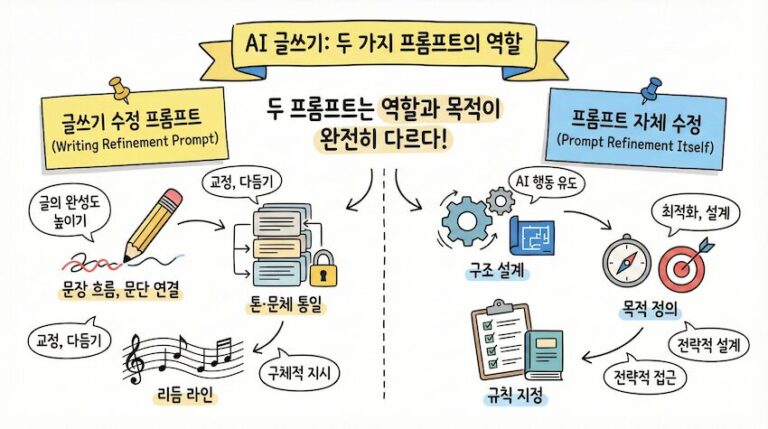 AI 글쓰기에서 ‘글쓰기 수정 프롬프트’와 ‘프롬프트 자체를 수정하는 것’의 차이 AI 글쓰기를 하다 보면“글을 어떻게 수정할 것인가?”와“프롬프트를 어떻게 더 정확하게