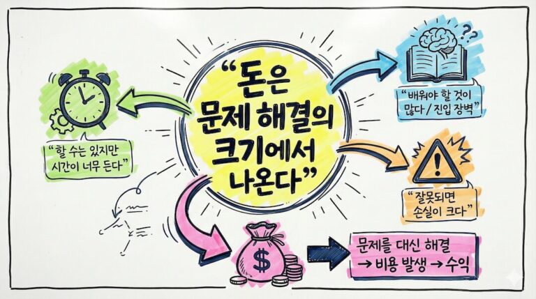 돈을 버는 일은 특별한 재능이나 운에서 시작되지 않는다.결국은 누군가가 겪고 있는 문제를 어떻게 해결하느냐에서 출발한다. 시간의 문제든, 배움의 문제든, 비용과