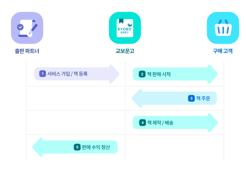 - 독자가 주문하면 POD 방식으로 인쇄·제본·배송이 이루어진다.