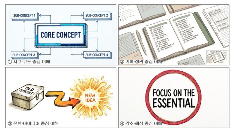사람의 콘텐츠 이해 방식은 4가지 사고 구조로 정리됩니다