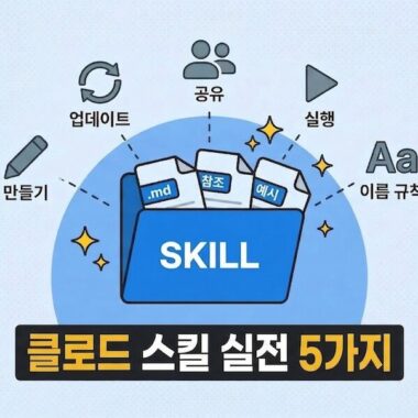 클로드 스킬은 반복되는 작업을 구조화한 작업 지시서입니다. “블로그 글을 쓸 때는 이 순서로, 이 규칙을 적용해서 작성하라”는 내용을 파일로 정리한 것입니다. 한번 만들어두면 같은 품질의 작업을 반복 실행합니다.