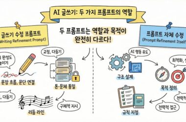 AI 글쓰기에서 ‘글쓰기 수정 프롬프트’와 ‘프롬프트 자체를 수정하는 것’의 차이 AI 글쓰기를 하다 보면“글을 어떻게 수정할 것인가?”와“프롬프트를 어떻게 더 정확하게 만들 것인가?”가완전히 다른 작업임에도 자주 혼동된다.둘 다 프롬프트를 다루는 일이지만목적과 역할은 분명히 다르다. 두 작업은 모두 “프롬프트를 […]